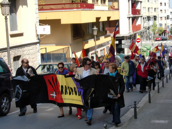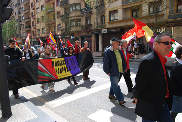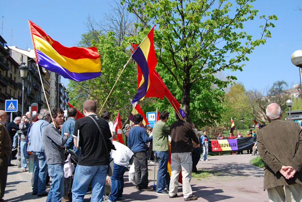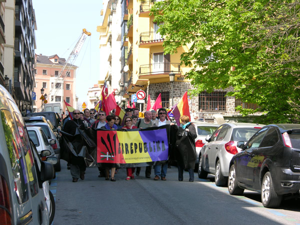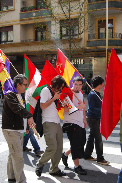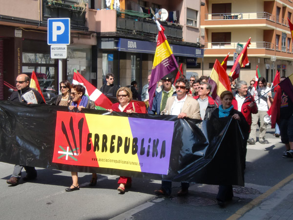 La manifestation s’est déroulée aux cris de: "Jamais deux sans trois, la République une nouvelle fois!", "Hemen gaude, Errepublikaren alde", "Les Bourbons aux requins!", "Jo ta ke Errepublika lortu arte", "Juan Carlos acelera, que viene la tercera", "Juan Carlos tirano, Irun Republicano"....