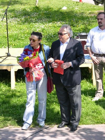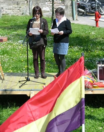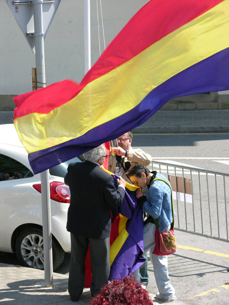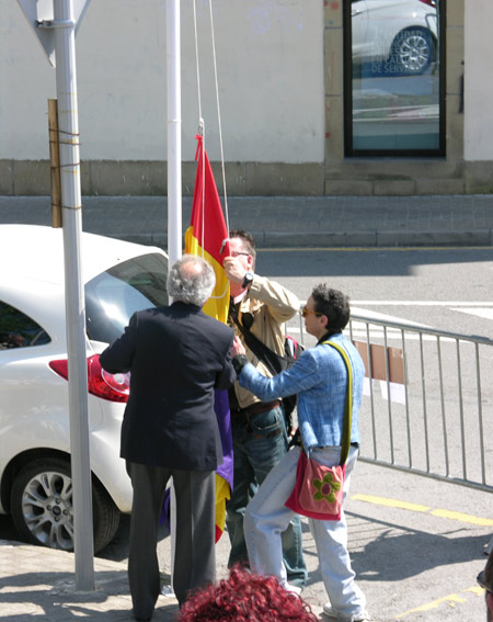 Jaime Rodriguez Salis accompagné de la journaliste Begoña del Teso, a été le chargé de hisser cette année le Drapeau Républicain. A cause des travaux dans la Plaza de San Juan, on a dû changer l'emplacement habituel de l'acte.