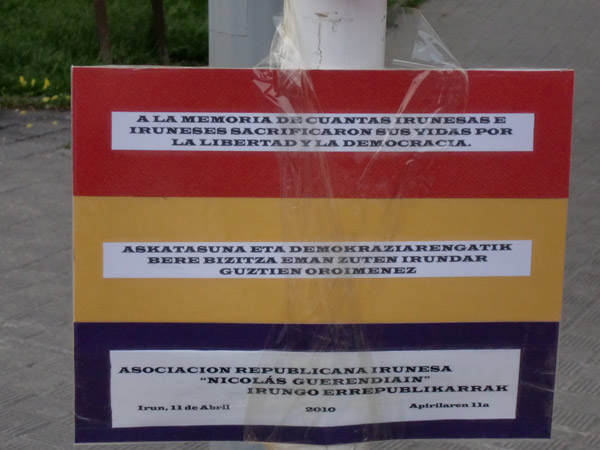 Nous voulons rendre hommage à ce glorieux moment historique qui représenta une impulsion démocratique reçue avec des manifestations pacifiques de joie dans les rues d'Irun et d'Euskal Herria.